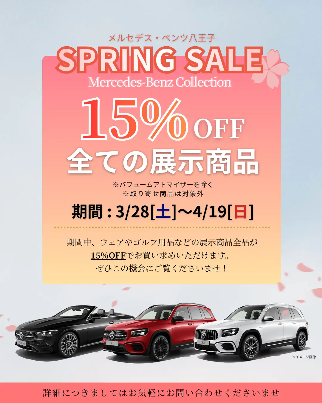※ご来場の際に、お友達追加画面またはフォロー画面をスタッフにご提示くださいませ。